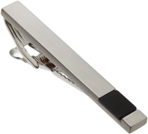 Geoffrey Beene Mens Brushed Rhodium With Black Insert Tie Clip, Silver/Black, One Size Overview